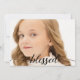 Personnalisez avec la photo de votre fille. Cette carte postale élégante de première sainte communion facilite l'envoi de votre gratitude. Doté d'une police de script moderne pour le mot "Béni" avec des embellissements de queue longue. Customisez l'information au dos de cette communion merci carte à plat.