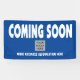 Bientôt Business Ouverture de la bannière pour annoncer qu'une nouvelle entreprise va bientôt ouvrir dans un emplacement. Bannière de taille plus petite, adaptée à la fenêtre ou à l'espace d'affichage réduit. Échangez l'espace réservé du logo avec votre propre image. Modifiez la ligne de texte à vos propres informations. Modifiez la couleur de l'arrière - plan si vous le souhaitez. Grandes lettres blanches sur arrière - plan couleur pour l'attention obtenir bannière pour une nouvelle entreprise.