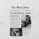 Vous cherchez une façon inoubliable de partager vos nouvelles passionnantes? Notre carte de faire-part de grossesse dans un style journal est la meilleure façon de répandre le mot! Doté d'une adorable échographie de votre bande de joie et d'une photo de vous deux, ce faire-part est sûr de capter l'attention de vos proches. Y compris les textes "nous avons un bébé", "nouvelles de dernière minute" et "bientôt". Partagez votre joie et votre enthousiasme avec cette carte unique et personnalisée de faire-part de grossesse. Cliquez sur personnaliser pour ajouter votre personnalisation ou modifier dans l'outil de conception afin d'effectuer d'autres modifications.