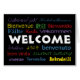 Un design d'accueil coloré où le mot accueil se fait dans des langues comme l'anglais, le néerlandais, l'espagnol, le japonais et plus ! Dans des couleurs comme le vert, le violet, le rouge, le bleu et le jaune contre un arrière - plan noir ! Le texte intérieur de cette carte de voeux peut être modifié et personnalisé !