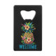 Ajoutez une petite bouffée de paradis à votre baroque avec cet ouvre-bouteille audacieux de la collection Welcome Pineapple. Doté d'un ananas richement illustré couronné de fleurs d'hibiscus et d'un "WELCOME" turquoise sur un arrière - plan noir élégant, il est parfait pour les fêtes de maison, les rassemblements de plage ou les locations de vacances. Cette décoration tropicale donne un ton chaleureux et festif et donne aux clients un style élégant et fonctionnel qui leur fera plaisir après la fin de la fête.