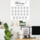 Faites une déclaration à votre réception de mariage avec ce magnifique tableau de 23 places. Le design floral moderne présente un rose de couleur ivoire, blanche ou crème qui se repose horizontalement, se reflétant élégamment dans un bassin d'eau serein. Le tableau peut accueillir jusqu'à 230 personnes avec 10 places par table. Le titre est écrit en calligraphie de script élégante, accueillant vos invités et les guidant à leurs tables désignées. La partie inférieure du tableau est dédiée aux noms du couple et à leur date de mariage, ajoutant une touche personnalisée à votre décor. Ce tableau de sièges dégage une atmosphère romantique, gracieuse, classe et glamour, ce qui en fait la façon idéale d'élever le style et l'élégance de votre réception de mariage tout en simplifiant les arrangements de sièges pour vos invités.