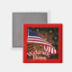 Feu d'artifice et drapeau américain pour un aimant de bienvenue militaire passionnant. Salut ! Fêtons ! Design original par Anura Design Studio 2010.