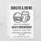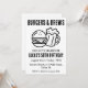 Célébrez votre journée spéciale avec un barbecue jardin et de nombreux encouragements! Cette invitation à thème rustique comprend un hamburger délicieux et une bière fraîche, idéale pour une fête d'anniversaire pour adultes. Le design comprend les mots clés "cheers", "bières" et "jardin" pour vous aider à trouver l'invitation parfaite pour votre célébration.