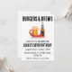 Célébrez votre journée spéciale avec un barbecue jardin et de nombreux encouragements! Cette invitation à thème rustique comprend un hamburger délicieux et une bière fraîche, idéale pour une fête d'anniversaire pour adultes. Le design comprend les mots clés "cheers", "bières" et "jardin" pour vous aider à trouver l'invitation parfaite pour votre célébration.