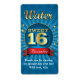 Voici un étiquette parfait pour mettre une bouteille d'eau ou une autre faveur pour les invités comme un merci spécial. Ce sweet sixteen merci étiquette rappelle un concert ou une affiche de cirque. Un médaillon enferme les mots dorés "Sweet 16" au sommet d'un arrière - plan d'éclatement bleu profond. Le mot "Eau" est écrit ci-dessus et le nom de la fille d'anniversaire se distingue ci-dessous dans la bannière rouge vif. Ajoutez un message spécial ci-dessous. Fait une bouteille d'eau un cadeau amusant et utile. Disponible avec des produits correspondants.