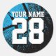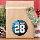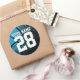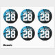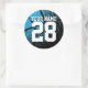 Big basketball stickers with custom jersey number. Personalized sport stickers and envelope seals. Vintage ball design with blue or custom color background. Sporty print for player, coach and fan. Great for kid's Birthday party and more. Large size.