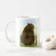 L'illustration lunatique d'encre et d'aquarelle de 2 amis animaux, une Big Bear et un petit lapin, avec quelques mots sur l'amitié décorent une tasse de votre choix.