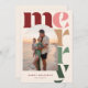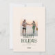 Un design moderne et coloré de cartes de voeux de Noël qui comprend 2 photos en forme d'arcade (l'une sur le devant et l'autre sur le dos). L'avant de ce design présente un grand pochoir "joyeux" accrochant les yeux comme la typographie qui est placé sur le dessus et cascade sur le côté droit. L'arrière de la carte a l'autre photo voûtée avec un grand type modifiable qui chevauche la photo et le texte modifiable pour les noms. Cette carte se démarque certainement de la foule et est la meilleure façon d'envoyer un peu d'acclamations de vacances ! N'oubliez pas de consulter la boutique de Lisa McLean Design pour obtenir des options de couleurs supplémentaires et d'autres modèles de cartes de voeux.