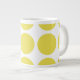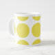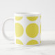 Mignonne et tendance Big Pois Jumbo Mug. Ce design présente des pois grand cercle surdimensionnés en jaune et blanc. Un texte peut être ajouté à cette conception pour lui donner une touche personnelle.