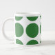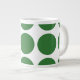 Mignonne et tendance Big Pois Jumbo Mug. Ce design présente des pois grand cercle surdimensionnés en vert et blanc. Un texte peut être ajouté à cette conception pour lui donner une touche personnelle.