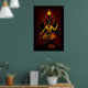 En 1854, l'occultiste français Eliphas Levi publie son célèbre livre sur la Doctrine et le Rituel de la Magie Transcendantale. Le frontispece incluait une gravure du dieu à cornes qu'il appelait "Baphomet" et "La chèvre de Mendes". L'image en a horrifié beaucoup et en a inspiré d'autres dans ce qu'on a appelé la renaissance occulte française du 19ème siècle. La figure représentait l'absolu et comportait divers symboles occultes, dont un pentagramme pointé sur le front, des signes de mousses et les mots "Solve" et "Coagula" sur les bras. Malgré l'intention du graphisme de représenter la sagesse occulte en général, les chrétiens orthodoxes l'ont longtemps qualifiée de satanique. Ceux d'un penchant vraiment diabolique, cependant, ont eu tendance à trouver l'ancienne image datée, domptée et donc peu inspirante. Ici, cette image classique est recréée avec des images et des symboles explicitement sataniques ; le pentagramme point-bas, la croix inversée, le 666, le glyphe alchimique brimstone, etc. Qu'il n'y ait aucune question de représentation de cet archétype. Pas besoin de porter un symbole légèrement perturbant et ambigu. Maintenant, vous pouvez avoir une image provocatrice, indéniablement satanique. REMARQUE : Il s'agit d'une affiche épaisse et brillante — Même le papier d'affiche "mat" "valeur" est un papier de poids lourd, brillant et de très haute qualité.