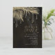 Optez pour un look glamour Old Hollywood en utilisant les pièces de cette suite mariage comme indiqué, avec des bijoux en cascade des feuilles de palmiers incrustés de diamants, ou supprimez les couches de bijoux pour un look légèrement plus conservateur. Cet ensemble présente des feuilles en or chatoyant contre un arrière - plan texturé de la couleur riche du café noir. L'invitation à la répétition présentée ici a une bordure d'angle de feuilles pétillants, et une police serif élégante pour ajouter à la romance. Entrez facilement les détails de votre événement en utilisant le modèle fourni. Affichez le lien de collection sur cette page pour voir tous les éléments correspondants dans ce bel ensemble ou recherchez ID830 pour voir d'autres options de couleur pour cette conception.
