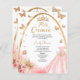Bilingue Rose Blush Gown Quinceanera Invitation Présentant la Gilded Tiara & Arch Frame Quinceanera Invitation bilingue, magnifiquement conçu par CaMiDesigns. Cette invitation exquise présente une superbe robe rose vierge ornée de délicats motifs floraux et papillons, parfaite pour célébrer cette étape inédite. Invitation vos proches pour participer aux festivités avec élégance et charme. Pour obtenir de l'aide sur les commandes, l'expédition, les informations sur les produits, etc., veuillez contacter directement le service à la clientèle de Zazzle.