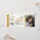 billet d'embarquement de mariage de destination or billet de mariage, portrait du couple engagé, avion avec boucle trail, et un facile personnalisable cette conception d'invitation. N'oubliez pas de garder le texte au dos du monogramme à jour.