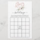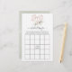 Carte de jeu de bingo de mariage avec des fleurs d'anémone et des feuilles d'eucalyptus dans un cœur géométrique rose gold.