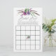 Cartes de bingo de douche de mariée à plante succulente tendance avec des plumes bohèmes personnalisables selon les spécificités de votre événement.