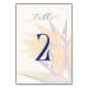 Cartes de numéro de table des fleurs tropicales. Oiseau orange de fleurs paradisiaques arrière - plan pour texte bleu foncé. Texte "Table" en haut avec des nombres au centre. Le texte et le nombre seront imprimés de la même façon de part et d'autre. Couleur ecru clair avec option pour supprimer le texte "table". Ajoutez les numéros un à la fois et ajoutez au panier. Cliquez sur l'article dans le panier et revenez à la page du produit pour créer une nouvelle carte numérique, et ainsi de suite, pour tous les numéros nécessaires.