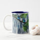 Une cascade éclaire au soleil. Une seule branche d'un arbre au bord des chutes surplombe de façon précaire l'eau qui se précipite. Dans le ruisseau de la branche un petit oiseau a construit un nid, paisiblement perché au-dessus de la tourmente.