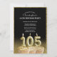 This black and gold printed glitter 105th birthday invitation is perfect for a man's birthday party. This design features cupcakes with candles and gold glitter on a black background, and is a nice design for a fun celebration of a milestone birthday, or any year.