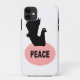 Ce magnifique boîtier iPhone 4 présente une silhouette noire d'une colombe fantaisie à l'oeil blanc, assise sur un nid rose ovale avec le mot paix écrit en noir au centre du nid. L'arrière - plan est blanc mais peut être changé en n'importe quelle couleur que vous aimez en cliquant sur le bouton "customiser".