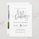 simple wedding invitation with elegant black script. The text, image and colors can be edited.