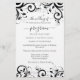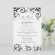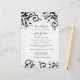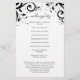 Festif et fantaisie noir et blanc tourbillonnant programme de mariage personnalisé. Des tourbillons décoratifs avec feuille et rose, et de belles polices avec ligatures tourbillonnantes. Programme de mariage simple, moderne et classique propre, customisez avec votre programme d'événements, les noms, et sur le dos ajouter vos noms et titres de mariage et un message spécial de mariée et mariée aux invités.