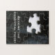 Jigsaw puzzles are family fun and this one becomes a puzzle within a puzzle. Enjoy this one adorned with a close up photograph of a black jigsaw puzzle segment with hints of blue and one missing puzzle piece. Click Customize it! to remove or change the text and you can select a font style, size and color you like.