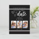 Black and White Modern Photo Collage Save the Date. Announce your upcoming nuptials with this chic and modern save the date card. Featuring a bold black background, this design showcases your 3 favorite engagement photos beautifully. A playful scattering of hand-drawn hearts adds a touch of romance and whimsical design, while the elegant typography clearly states 'Save the Date' and includes space for the couple's names and wedding date. This is the perfect way to inform your guests and build anticipation for your special day, setting a sophisticated tone for your wedding stationery suite. Ensure your loved ones mark their calendars for your unforgettable celebration.