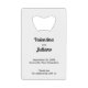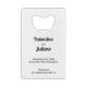 A rectangle bottle opener as a favor with black text for couples seeking a classic and timeless color that can complement various wedding themes. It is also suitable for couples who prefer a text based design without background elements for readability. The black text contrasting on the bottle opener’s color also improves readability. The text is center aligned and the fonts used are script and sans serif. Script font is used to enhance the design while the sans serif font is used to enhance readability. Customize it by typing the names of the bride and groom, date and location of the wedding. You can also change the wording in the design tool including the font style, font color and background color. Please check the appearance of the front and back sides after typing text. If the appearance is pleasing to you, you can place your order now. If you need to resize or reposition the text, please adjust in the design tool. Bottle opener as a favor to express appreciation to the presence of the guests. To the bride and groom, congratulations on your engagement! Wishing you both a lifetime filled with love and happiness.