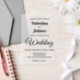 A vellum wedding invitation with black text on white background for couples seeking a classic and timeless color combination that can complement various wedding themes. It is also suitable for couples who prefer a text based design without background elements for readability. The black text contrasting on the white background also improves readability. The text is center aligned and the fonts used are calligraphy, script and sans serif. Calligraphy and script fonts are used to enhance the design while the sans serif font is used to enhance readability. Customize it by typing the names of the bride and groom, day, date, time and venue of the wedding. You can also change the wording in the design tool including the font style, font color and background color. Please check the appearance of the front and back sides after typing text. If the appearance is pleasing to you, you can place your order now. If you need to resize or reposition the text, please adjust in the design tool. To the bride and groom, congratulations on your engagement! Wishing you both a lifetime filled with love and happiness.