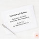 Rectangle favor stickers with black text on white background for couples seeking a classic and timeless color combination that can complement various wedding themes. It is also suitable for couples who prefer a text based design without background elements for readability. The black text contrasting on the white background also improves readability. The text is center aligned and the fonts used are script and sans serif. Script font is used to enhance the design while the sans serif font is used to enhance readability. Customize it by typing the names of the bride and groom, date and location of the wedding. You can also change the wording in the design tool including the font style, font color and background color. Please check the appearance after typing text. If the appearance is pleasing to you, you can place your order now. If you need to resize or reposition the text, please adjust in the design tool. Stickers to add a personal touch and enhance wedding favors. To the bride and groom, congratulations on your engagement! Wishing you both a lifetime filled with love and happiness.