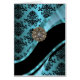 PERSONNALISEZ ce chic élégant motif vintage traditionnel damassé noir sur un arrière - plan bleu turquoise aquamarine et un ruban design moderne tourbillon avec bijou en cristal de diamant girly, avec votre propre texte, nom ou monogramme, initiales. PERSONNALISER Utilisez le BOUTON PERSONNALISER pour ajuster le texte, la taille, la position de la police par glisser-déplacer.