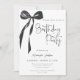 Celebrate in style with this Modern Calligraphy Black Bow Birthday Invitation. Designed with chic hand-lettered script and a classic black bow accent, this elegant party invite is perfect for milestone birthdays, sweet sixteens, or sophisticated adult celebrations. The minimalist layout paired with bold calligraphy creates a timeless look that’s easy to personalize with your party details.