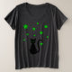 Dessin en silhouette d'un chat noir aux yeux verts. Une étoile verte est suspendue à la queue du chat. Un ciel étoilé d'étoiles assorties se trouve à l'avant et à l'arrière.