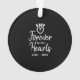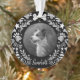 Chérissez les merveilleux souvenirs pour toujours avec notre ornement de Noël de marionnettes personnalisé. Notre design se compose d'un design de style tableau noir avec un arrière - plan de tableau noir et de notre magnifique tableau blanc dessiné à la main (étoiles, os de chien, arbre, feuillage, empreintes de pattes & sucres de canne). Les oeuvres d'art de la craie sont disposées pour créer ce magnifique cadre élégant. Personnalisé avec la photo et le nom de votre animal de compagnie. L'envers présente l'arrière - plan noir avec "Forever in our Hearts" présenté dans une typographie à la craie blanche et personnalisée avec l'année de naissance et l'année passée. Toutes les illustrations contenues dans ce beau tableau de bord mémorial des animaux de compagnie art de Noël photo ornement design sont dessinées à la main oeuvre originale de Moodthology.