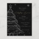 Élégant tableau noir et or Noël Dîner Invitation. Détendez la joie des fêtes avec cette carte postale de Noël élégante de style tableau noir avec un arbre de Noël dessiné à la main et des accents d'étoile avec une touche d'écriture or. Le design minimaliste noir et blanc en fait un endroit parfait pour les invitations à des dîners de Noël modernes, les salutations festives ou les mailers de vacances rapides. Customisez avec vos propres détails d'événement ou message de vacances pour une touche personnalisée.