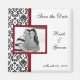 Magnet Réservez la date, avec votre photo sur un élégant arrière - plan damassé noir et rouge. Ajoutez votre photo et entrez vos informations dans notre modèle convivial.