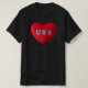 Here’s a clear description for a black T-shirt with a heart print write U.S.A. logo print: