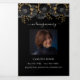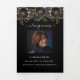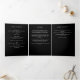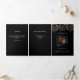 Un programme triplé élégant. Un arrière - plan noir classique, un floral noir et doré et un espace pour une photo. Personnalisez et ajoutez le nom, les dates et votre texte.