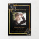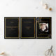 Un programme triplé élégant. Un arrière - plan noir classique, un cadre en faux or, des fleurs noires et de l'espace pour votre photo. Personnalisez et ajoutez le nom, les dates et votre texte.