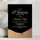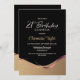Cette invitation moderne à la fête du 21e anniversaire en noir et or rayonne d'élégance et de sophistication simples. Son design se décline en noir et or, séparé par une vague fluide et un ruban rose élégant qui coule d'un côté à l'autre. La zone de texte personnalisable vous permet d'inclure sans effort tous les détails nécessaires à la célébration de votre anniversaire spécial, y compris la date, l'heure, le lieu et les informations RSVP. Que vous planifiez un rassemblement ou une grande aventure, cette invitation contemporaine vous impressionnera.
