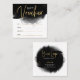 Certificat cadeau de salon de beauté avec effets d'aquarelle noire arrière - plan et de feuille d'or avec espace pour votre logo, les détails de l'entreprise et les liens des médias sociaux. Idéal pour utiliser comme bon cadeau personnalisé pour votre bar de beauté, boutique ou petite entreprise. La parties scintillant en faux or et la police de script moderne ajoutent une touche glam à cette carte cadeau d'affaires.