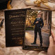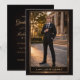 Black gold portrait design featuring a formal graduate photo framed by a double gold border with soft light accents. Script typography pairs with a dark textured background, ideal for hosting a polished evening celebration with dinner, drinks, and dancing.