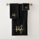 Enveloppez-vous dans le luxe avec le Black and Gold Modern Script Girly Monogram Nom Serviette de bain ensemble. Doté d'un design noir épuré et d'un monogramme doré et élégant en écriture moderne, cet ensemble de serviettes personnalisées ajoute une touche sophistiquée et élégante à toute salle de bains. Fabriquées en tissu doux et absorbant, ces serviettes sont à la fois fonctionnelles et à la mode, parfaites pour un usage quotidien ou comme un cadeau réfléchi pour quelqu'un de spécial. Elevez votre décor de salle de bain avec cette serviette chic et monogrammée qui respire l'élégance intemporelle.