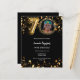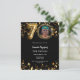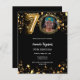 Une invitation photo moderne et design pour une fête de 70e anniversaire. Un arrière - plan noir classique, décoré de faux étoiles dorées. Personnalisez et ajoutez les détails de votre fête. 1 feuille = 1 invite imprimé bord à bord.