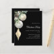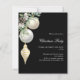 Pour une fête de Noël en famille et entre amis. Un arrière - plan noir élégant et moderne. Décoré de baubles blancs et dorés, un peu de verdure et un cône de pin. Personnalisez et ajoutez les détails. Retour : ajoutez l'URL de votre site Web au code QR pour RSVP et/ou les détails du parti. 1 feuille = 1 invitation imprimé bord à bord.