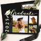 Célébrez la grande réussite de votre diplômé avec ce faire-part de graduation casquette noir élégant en papier photo noir. Doté d'élégants accents de feuille d'or, d'un design casquette de grad audacieux et d'un espace pour plusieurs photos, cette carte est parfaite pour présenter les réalisations de votre diplômé. Idéal pour obtenir un diplôme d'études secondaires, collégiales ou universitaires, ce faire-part moderne allie sophistication et touche personnelle.