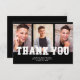 Carte "Merci" 3 photos en noir avec vos photos, votre nom, le nom de l'école et l'année de remise des diplômes. Contactez-moi pour obtenir de l'aide sur vos personnalisations ou pour demander des produits Zazzle correspondants ou coordonnés supplémentaires pour votre groupe.