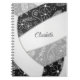 Ce joli carnet à thème volleyball présente l'image réaliste d'un volleyball abstrait surdimensionné qui a des panneaux bleus, gris et blancs avec des fleurs de doodle délicates dessinées à la main, des plumes et des paislies en blanc modelé sur les panneaux bleus et gris du volleyball - customisez avec le nom de l'athlète - par katz_d_zynes